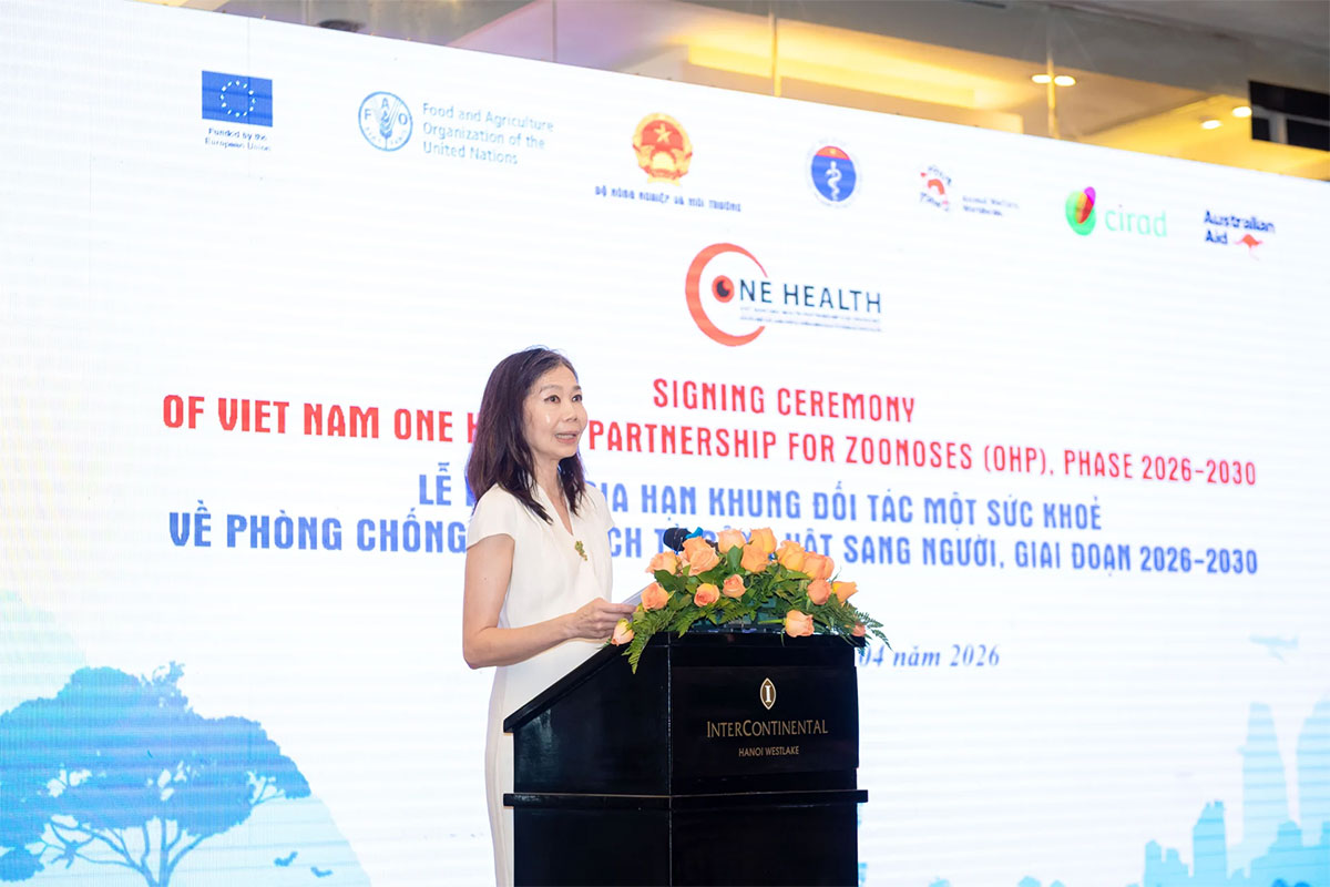 Đại điện Liên Hợp quốc tại Việt Nam, bà Pauline Tamesis, Điều phối viên thường trú khẳng định: "Lễ ký kết Khung đối tác một sức khỏe về Phòng chống dịch bệnh từ động vật sang người giai đoạn 2026-2030 là một dấu mốc ý nghĩa đổi với công tác bảo đảm an ninh y tế của Việt Nam".