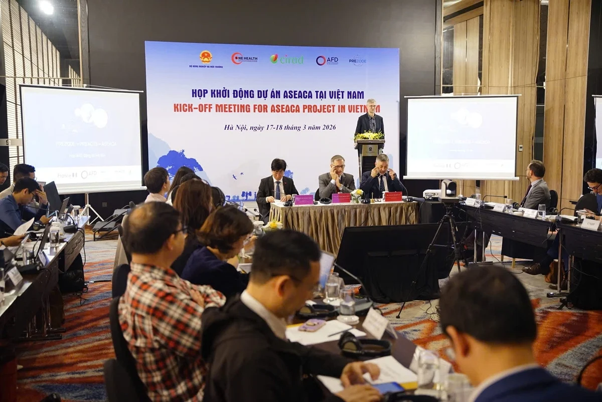 Ngày 17 tháng 3 năm 2026, tại Hà Nội, Bộ Nông nghiệp và Môi trường phối hợp với Trung tâm Hợp tác Quốc tế về Nghiên cứu Phát triển Nông nghiệp của Pháp (CIRAD), Đại sứ quán Pháp tại Việt Nam và các đối tác tổ chức Cuộc họp khởi động Dự án ASEACA (Preventing the Emergence of Zoonotic Diseases in Africa, Southeast Asia and the Caribbean) trong khuôn khổ sáng kiến PREZODE của Chính phủ Pháp.
